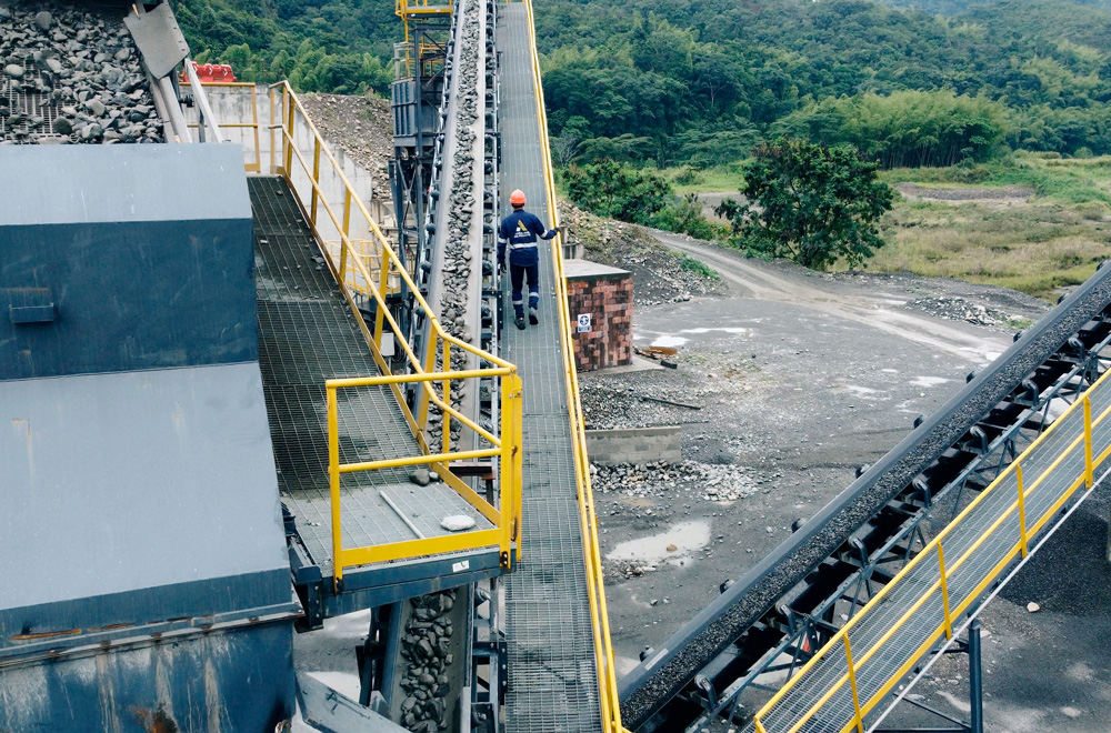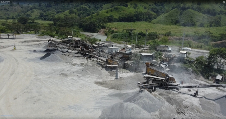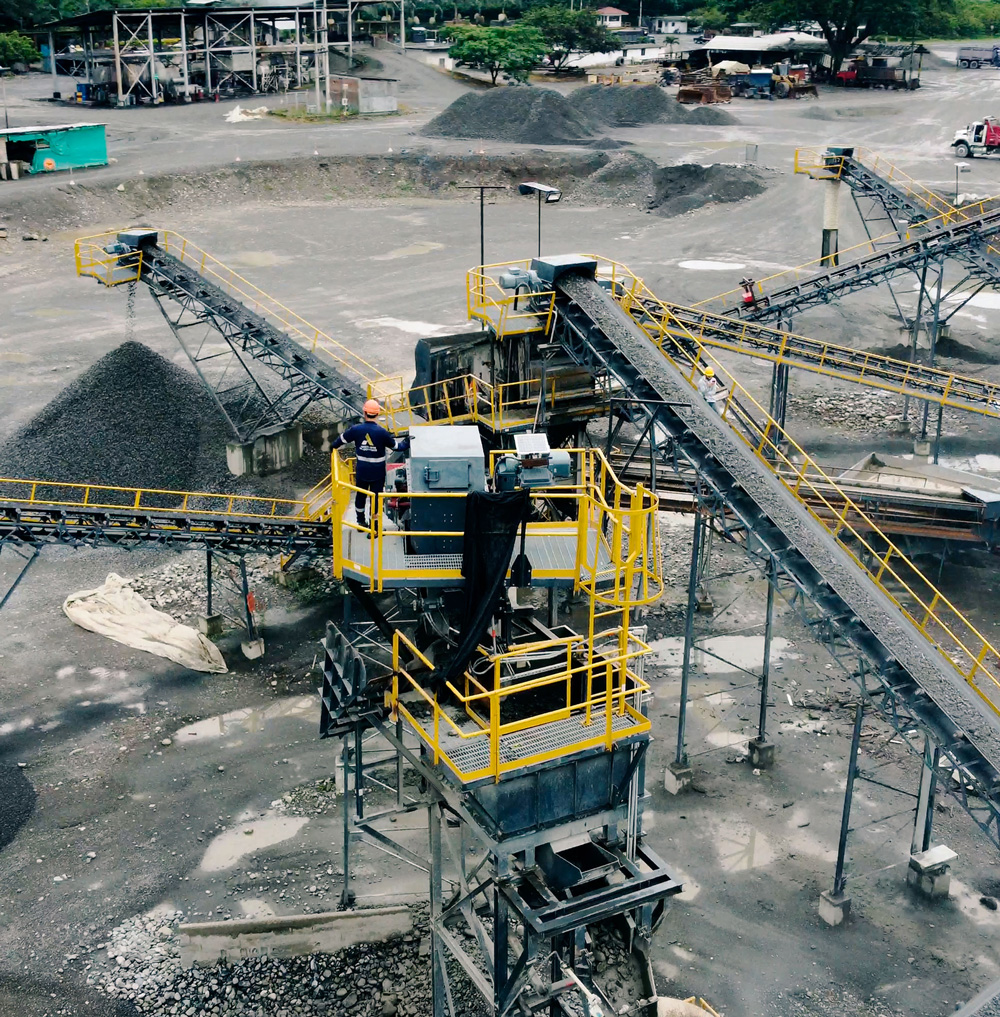 Dos líneas de trituración, una con cono, donde se producen agregados que cumplen con especificaciones NTC e INVIAS, para elaboración de concretos y otra línea de trituración por impacto para procesar agregados que se usan en elaboración de mezclas asfáltica tipo INVIAS, y producción de base granular tipo INVIAS.