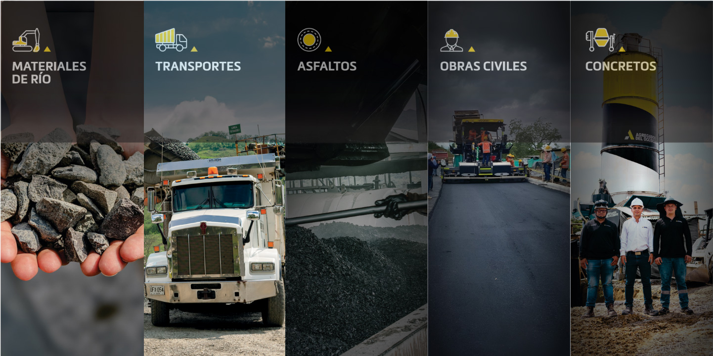 Llegando hoy a consolidar 6 unidades de negocios complementarias, como son: servicios de producción y suministro de concreto en obra, producción y suministro de asfalto, transporte de nuestros materiales, y realización de obras civiles de infraestructura y construcción de vivienda privada. Así brindamos además de materiales de la mejor calidad, una asesoría integral que aporta tranquilidad y confianza en sus proyectos / no se pondrá textos complementarios.